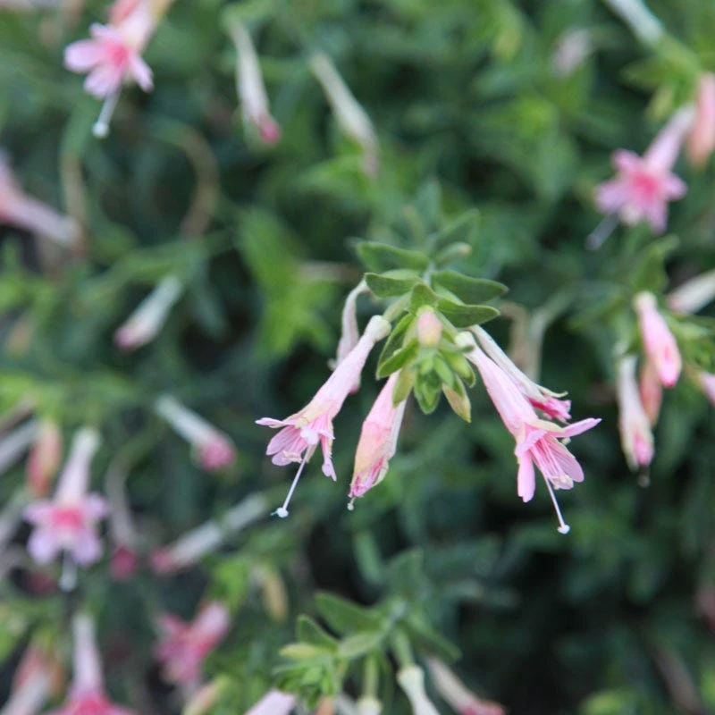 Zauschneria latifolia Woody’s Peach Surprise is a low-growing form of Fire Chalice flowering with light, peach-pink flowers, an unusual color in this genus of orange and scarlet bloomers. This perennial colors the garden in late summer and early fall.